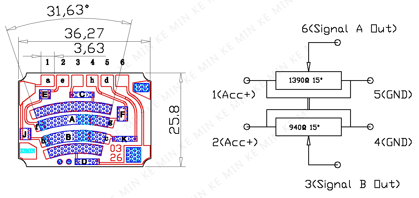 | 产品特质: 1、基材基材种类通常分为三种 1-1:R4(玻璃纤维线路板)特性:耐温,绝缘性能稳定,平整度好,表面光滑,无凹坑,阻燃,成本低,性价比高,温度系数小于400PPM/°C 1-2:96%氧化炉陶瓷特性:安装精度高,温度系数小于300PPM/°C,散热快,功率高,缺点:成本高,易碎裂 1-3 PI特性:易折弯,体积小,产品可以小微型化,成本低,耐高低温 2、导电线路导电线路材质根据基材不同大致分为三类 2-1 :基材为FR-4铜铂镀金 2-2:基材为陶瓷的使用银钯浆的方式 2-3:基材为聚酰亚胺的使用银浆 3、有效电阻行程主电阻区1端---3端 4、变化输出主电阻区通过电刷与2端输出电路导通,滑动电刷在电阻区和2端输出电路改变电阻的变化并输出 |